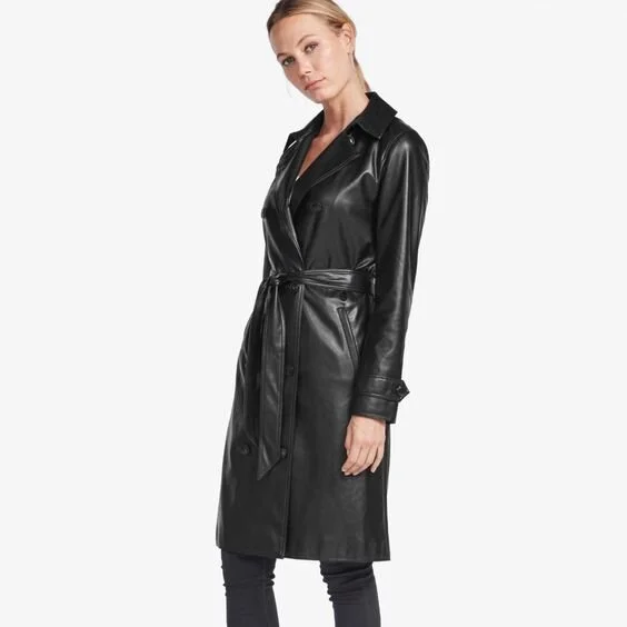 This beautiful vegan leather trench coat is made in Japan and is ideal for rainy days.