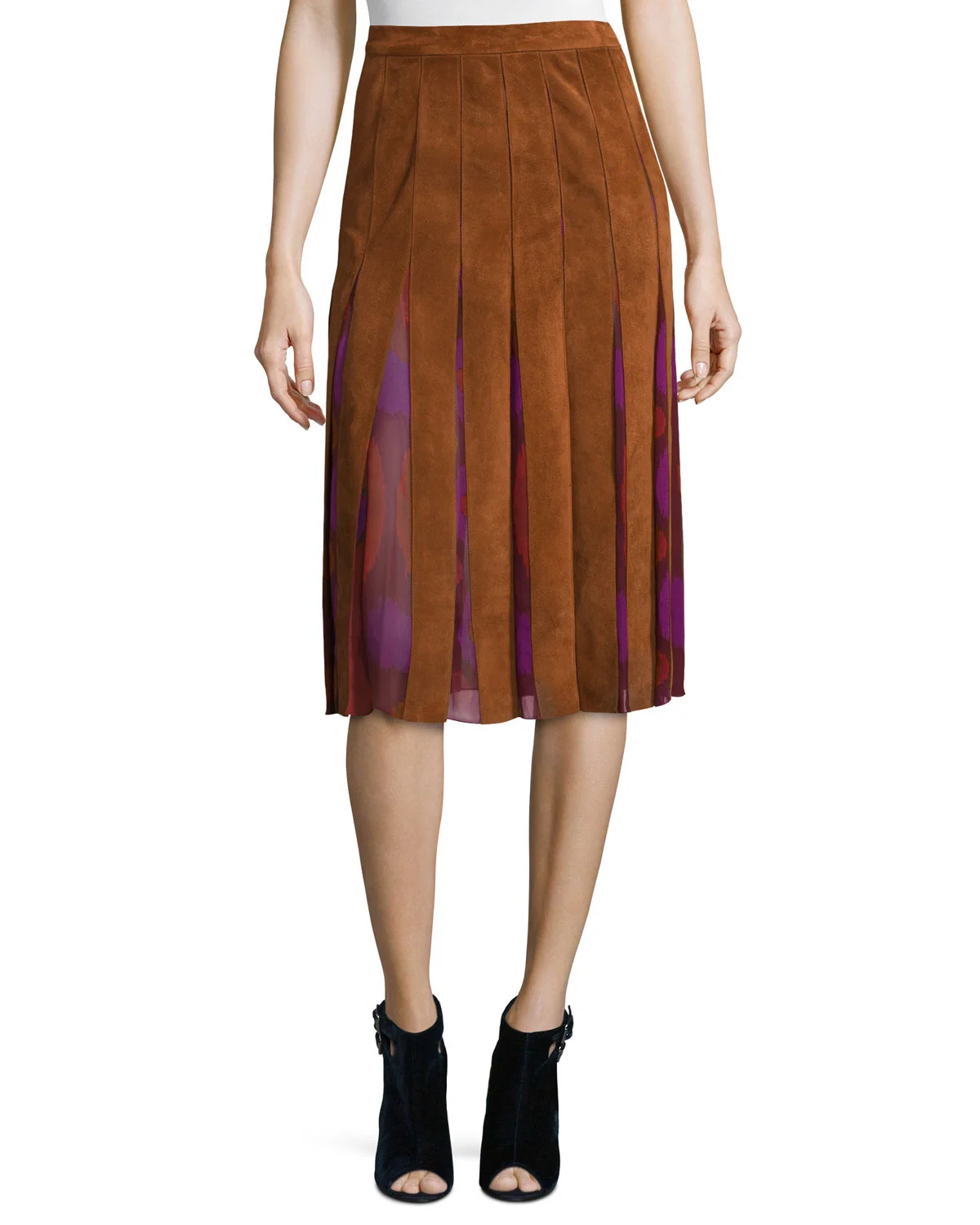 Diane von FurstenbergMelita Suede & Silk A-Line Midi Skirt. Last Call Neiman Marcus. Was: $798. Now: $559 + additional 30% off: $363.