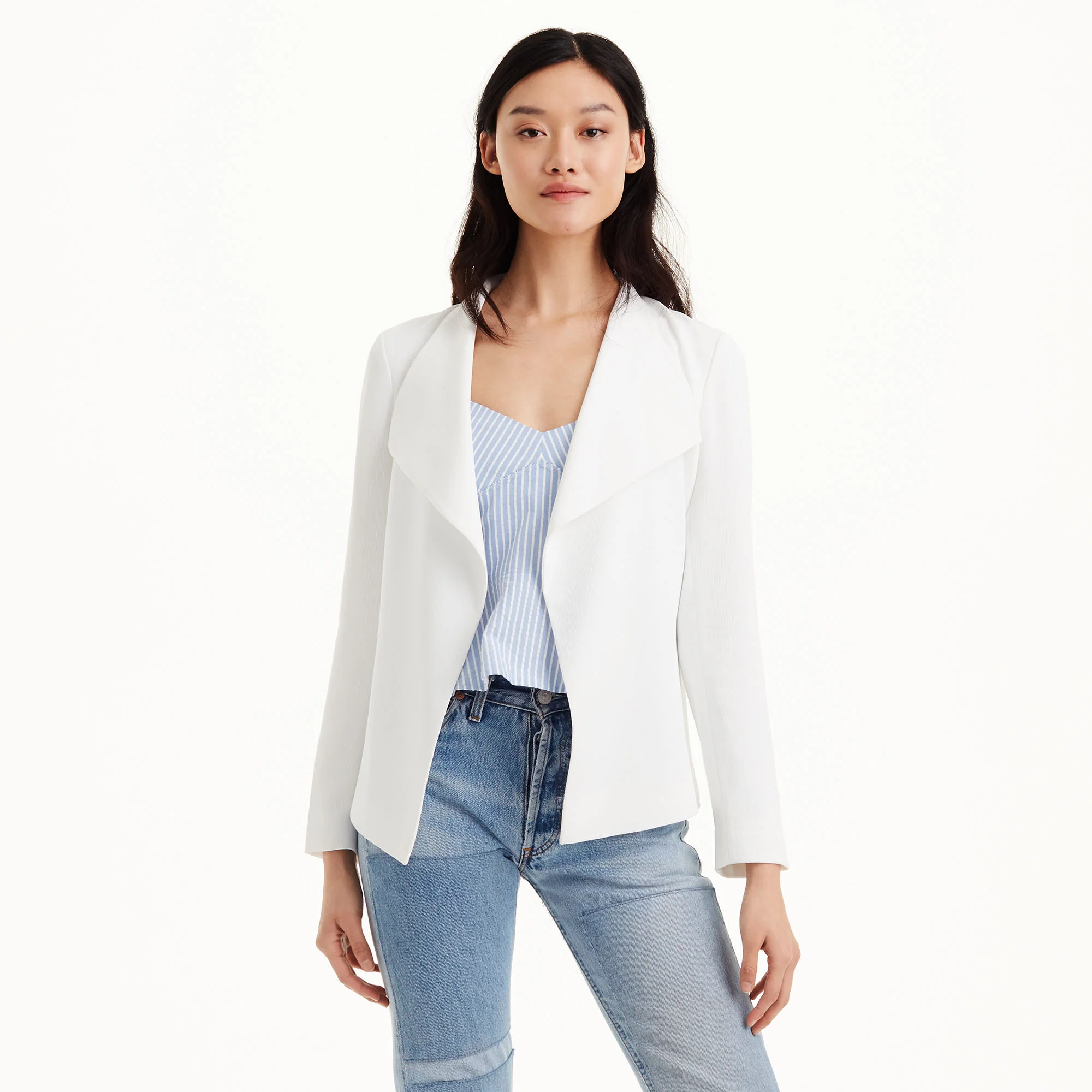 For a modern take on the blazer, this jacket is just right plus it shows off your shape both in the front and back. And the price is right, too. This is the time to hop on the Club Monaco sales. They don't last long and the quality is wonderful.