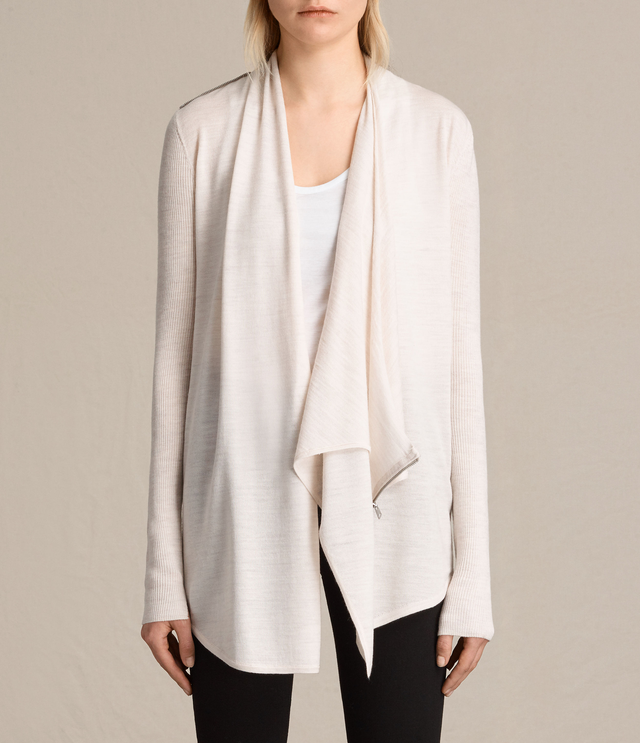 Some days the blazer above will feel too dressy. If you are simply running the kids to school on a rainy day, it's imperative that we don't sacrifice your luxurious style. This cardigan from All Saints is everything. Wear it either of the two ways pictured below, depending on your look for the day. It's especially flattering with skinnies, so this is useful with your current denim collection or the colored jeans listed further down on this list. Alternatively, wear this cardigan with the jumpsuit above and pair of your slingbacks or a higher heel. Make your outfit dressier or more casual depending on your shoe choice. Slip on sneakers are going to look super hip with either of these cardis.